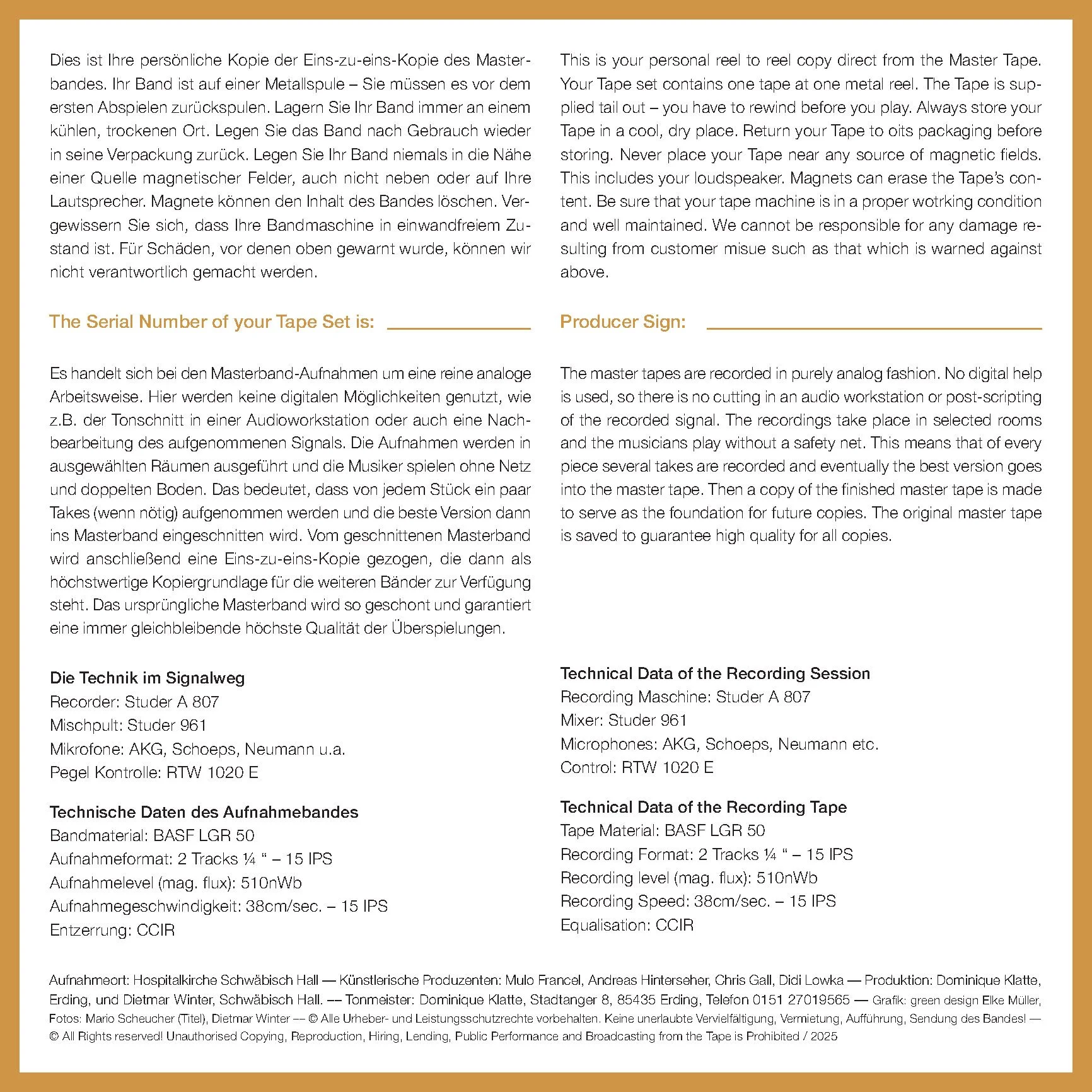 We're planning some big concerts next year to mark Quadro Nuevo's 30th anniversary. If we have master tape copies at our merchandise stand at the Isar Philharmonic in Munich on February 18, 2026, for example, I think that's great and I'll be very happy. I'm proud of that because not every band has that. Many musicians are making vinyl again, but an audio tape is cool.