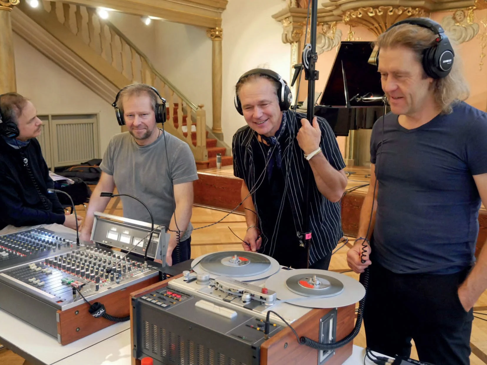 Mulo: We won't always do that because we also want to cater to people who stream, listen to CDs, or listen to vinyl. No one in Quadro Nuevo has a tape recorder anymore. In 1989, I completed my training as a sound engineer at the School of Broadcasting Technology in Nuremberg. That's where I learned to edit audio tapes. At the time, I thought it was almost obsolete and was looking forward to CDs. Nowadays, there's something nostalgic, almost archaic, about recording music on magnetic tape and working with tape saturation. I find that exciting. I won't be listening to music on tape in my private life. My life is too hectic for that; I don't have enough peace and quiet. Sometimes I treat myself to a vinyl evening with friends. I could imagine doing that with a tape recorder too. I think it's good that there are enthusiasts out there. We were at Dietmar Winter's house and listened to CDs versus tape. We could appreciate the warmth and directness that came across from the tape.
